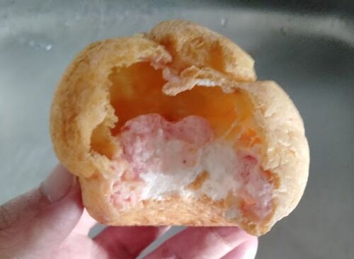 こんにちは 私は普段スイーツ買わない人なんですが 店頭で目を惹いたのがこれ ヤマザキのクリームたっぷりツインシュー いや実のところ 30%引きシールが目に留まった のは否定しませんですよはい で、買ってきたわけです おうちに帰って早速いただきます う…