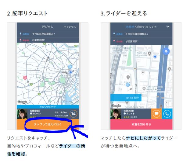 上記画像によると、ドライバーはアプリ上の配車リクエストがあると、